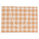 Peach White Chequered Gingham Pattern Large Gift Bag