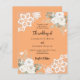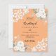 For an elegant and romantic wedding. A peach coloured background decorated with white florals, roses and white lace. Personalize and add your names and details.