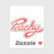 [Sticker] " Peachy " in the colour red . Other colours are also available