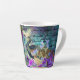 Small Latte Mug. Peacock and purple flowers all around. Touches of gold.