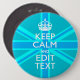 Peacock Aqua Keep Calm And Your Text Union Jack 6 Inch Round Button