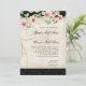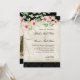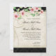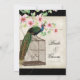 This is a very fun and elegant invitation. Featuring stylized, hand watercolored flowering blossom branches, a vintage peacock perched on a hand drawn bird cage with hand painted swirls in the background. The lacey parchment background is also original artwork and you can select your own choice of background border colour, shown here in black. On the reverse side is the swirls and blossoming branch with the parchment, a detailed damask pattern in the background and your wedding invitation text. YOU MIGHT ALSO ENJOY: