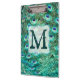Peacock Bird Feather Teal Turquoise Vintage Victorian Monogram Initial Clip Board Personalized