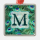 Peacock Bird Feather Teal Turquoise Vintage Victorian Monogram Initial Christmas Ornament Personalized