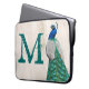 Peacock Bird Feather Teal Turquoise Vintage Victorian Monogram Initial 15" Laptop Case Bag Personalized