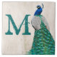 Peacock Bird Feather Teal Turquoise Vintage Victorian Monogram Initial Decorative Display Tile Personalized