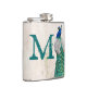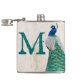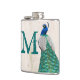 Peacock Bird Feather Teal Monogram Whiskey Flask