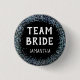 Peacock Blue Glitter Team Bride Name Black 1 Inch Round Button
