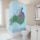 Peacock with a fuchsia lotus flower and henna in a backdrop of light blue