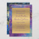 Peacock Blue Purple Abstract Gold Wedding Invitation