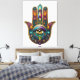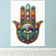 Peacock Colors Hamsa w/ Gold Third Eye Canvas Print