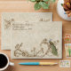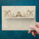 Un paon majestueux repose sur d'élégants tourbillons gravés et regarde vers un damas peint à la main très subtile avec le bleu paon derrière. Le mélange d'éléments d'art Vintage et d'aquarelle contemporaine peinte à la main par Audrey Jeanne Roberts donne une belle qualité intemporelle à cette suite d'invitation.