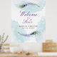 Peacock Feather Custom Sign. This simple and elegant welcome sign is created with colourful peacock feathers and a watercolor texture. The background of the design is set to white but it can be changed to any colour you would prefer.