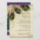 COLOR PALETTE: purple, tan, cream royal blue, green, and rust. DESIGN: Matching Dinner Menu Card. The bride and groom's names and wedding date are on the front of this design. This antique vintage inspired wedding collection has a complete ensemble of products and can be created in several colorways. If you would like it to match your wedding let us know via email and we'll be happy to assist you. This design consists of a stately peacock on a tree branch vintage art element layered three peacock feathers and over an angel etching, swirls, antique handwriting, hand painted lace overlayed on parchment and a beautiful original art damask pattern. The background colour can be changed to match your wedding.