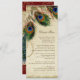 COLOR PALETTE: Burgundy Red, tan, cream, royal blue, green, and rust. DESIGN: Matching Dinner Menu Card. The bride and groom's names and wedding date are on the front of this design. This antique vintage inspired wedding collection has a complete ensemble of products and can be created in several colorways. If you would like it to match your wedding let us know via email and we'll be happy to assist you. This design consists of a stately peacock on a tree branch vintage art element layered three peacock feathers and over an angel etching, swirls, antique handwriting, hand painted lace overlayed on parchment and a beautiful original art damask pattern. The background colour can be changed to match your wedding.