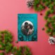 This elegant wedding invitation features a round photo surrounded by real gold foil peacock feathers on a shimmering floral turquoise background.