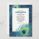 Peacock Feather Navy Blue Gold Wedding Invitation