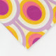 A bright peacock feather oval patterned pink, purple, yellow, orange and cream blanket. Personalize with your own name and initial currently reads Djinda H. Designed by Sarah Trett.