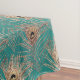 Peacock feather pattern glitter teal gold elegant tablecloth