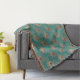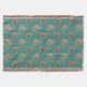 Peacock feather pattern glitter teal gold elegant throw blanket