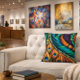 Peacock Feather abstract portrayal bursting with vibrant hues, dances across the canvas in a kaleidoscope of colour. Each stroke intertwines, creating a symphony of blues, greens, and purples that swirl and converge, echoing the natural elegance of the majestic bird's plumage.