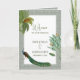 A vintage peacock bird design with tropical greenery and damask pattern background. This design is ideal for all seasons. An elegant watercolor design in a contemporary theme. A classy wedding order of service program fan design with glorious peacock feathers and modern elements. Matching wedding invitations and other stationery items are also available.