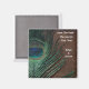 This colourful peacock feather makes an awesome wedding save the date magnet. The vibrant green and blue colours of the feathers' eyes make a remarkable contrast to the brown background with gold flecks. Make your customized magnets perfect for your peafowl wedding.