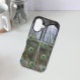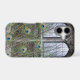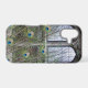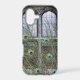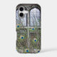 Cool looking and trendy iPhone hard-shell case that features a photo image of colourful peacock fantail feathers against the background of Gothic style windows. Select your iPhone case style.