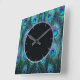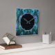Lovely theme features a rich display of aqua and purple Peacock feathers with inner circle in black and bordered with circle in blue green with time indicator spikes.