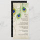 COLOR PALETTE: Black, tan, cream, gold, blue, green and purple. DESIGN COLLECTION: Matching formal event or reception dinner menu card. This is part of a Wedding Invitation Sets of complete matching products. These modern, contemporary Peacock Feathers Wedding Invitations are trendy, elegant and chic. The artwork is from original watercolor art hand painted by Audrey Jeanne Roberts. There is a background of textured, tea stained, teastained, antiqued lace, stylized, modern peacock feathers and a coordinating colour side border. On the reverse side is your personalized wedding invitation text, a set of peacock feathers with hand drawn swirl scroll flourishes in tan and a subtle swirled swirling calligraphic line drawing damask pattern.