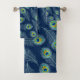 Peacock Feathers Blue Pattern Bath Towel Set