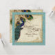 PAPER SELECTION: This is shown on "basic paper", another great choice would be "metallic ice" which is a clean white, pearlized shimmery surface. It would also be beautiful on "Champagne Metallic" linen, felt or any of the other choices. COLOR PALETTE: aqua blue, tan, cream royal blue, green, and rust. DESIGN: This is part of a Wedding Invitation Set of complete matching products. This antique vintage inspired wedding collection has a complete ensemble of products and can be created in several colorways. If you would like it to match your wedding let us know via email and we'll be happy to assist you. This design consists of a stately peacock on a tree branch vintage art element layered three peacock feathers and over an angel etching, swirls, antique handwriting, hand painted lace overlayed parchment and a beautiful original art damask pattern. The background colour can be changed to match your wedding.