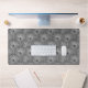 An elegant peacock feather pattern done in a silver glitter look on grey background.