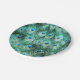 Paper plates with a brightly coloured pattern of exotic and wild peacock feathers in pretty teal, jewel green, aqua and cobalt blue. Artistic and fancy, created with watercolors. A chic and stylish design.