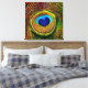 A wrapped canvas with a stunning closeup photograph of a vibrant and beautiful heart shaped blue eye of a gorgeous turquoise and gold peacock bird feather. Perfect way for bird lovers to say: I love Peacocks!