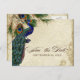 Peacock & Feathers Formal Save the Date Black Tan Announcement Postcard