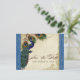 PAPER SELECTION: Postcards are printed on a very nice, very heavy stock that is glossy on the front side and matte finish on the reverse. COLOR PALETTE: horizon blue, tan, cream royal blue, green, and rust. DESIGN: This antique vintage inspired wedding collection has a complete ensemble of products and can be created in several colorways. If you would like it to match your wedding let us know via email and we'll be happy to assist you. This design consists of a stately peacock on a tree branch vintage art element layered three peacock feathers and over an angel etching, swirls, antique handwriting, hand painted lace overlayed parchment and a beautiful original art damask pattern. The background colour can be changed to match your wedding.