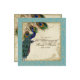 PAPER SELECTION: This is shown on "basic paper", another great choice would be "metallic ice" which is a clean white, pearlized shimmery surface. It would also be beautiful on "Champagne Metallic" linen, felt or any of the other choices. COLOR PALETTE: aqua blue, tan, cream royal blue, green, and rust. DESIGN: This antique vintage inspired wedding collection has a complete ensemble of products and can be created in several colorways. If you would like it to match your wedding let us know via email and we'll be happy to assist you. This design consists of a stately peacock on a tree branch vintage art element layered three peacock feathers and over an angel etching, swirls, antique handwriting, hand painted lace overlayed parchment and a beautiful original art damask pattern. The background colour can be changed to match your wedding.