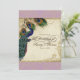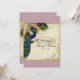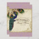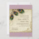 PAPER SELECTION: This is shown on "basic paper", another great choice would be "metallic ice" which is a clean white, pearlized shimmery surface. It would also be beautiful on "Champagne Metallic" linen, felt or any of the other choices. COLOR PALETTE: plum lavender, tan, cream royal blue, green, and rust. DESIGN: This is an elegant, formal antique vintage inspired wedding collection that has a complete ensemble of products and can be created in several colorways. If you would like it to match your wedding let us know via email and we'll be happy to assist you. This design consists of a stately peacock on a tree branch vintage art element layered three peacock feathers and over an angel etching, swirls, antique handwriting, hand painted lace overlaidd parchment and a beautiful original art damask pattern. There is a hand calligraphy font text that reads "The Wedding of" The lavender and tan background colour can be changed to match your wedding.