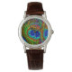 I like the illustrative watch with the lady on it. It is a great reminder that I am blessed and it has a very sturdy leather band. The colors are true and vibrant. Love the color of the Leather also. Very nice.
