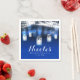Peacock Feathers, Mason Jar & String Lights Party napkins. Customize with any text.