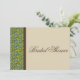Elegant design bridal shower invitation. Cream and brown background, and peacock feathers design on the side.
