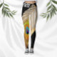 Peacock Feathers Stylish Black Modern Tan Women Leggings