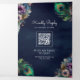 Peacock Floral Feather QR Code Navy Blue Wedding Tri-Fold Invitation