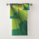 If you love the colours of a peacock, this design will be great for you. It features shades of green, gold, and blue arranged from dark to light that gives the circle a 3D look with some styling to resemble a peacock's feather. This towel set can be bought all together or as separate pieces.