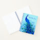Journal in a fantasy peacock with a lavish tail, in shades of deep turquoise and cobalt blue, on a soft aqua background with customizable text
