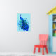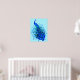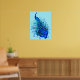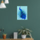 Poster in a fantasy peacock with a lavish tail, in shades of deep turquoise and cobalt blue, on a soft aqua background
