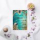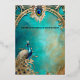 A stylish and elegant design on a marbled blue, purple and beige watercolor background edged with an arched art nouveau border detail at the top that has a single pearl encrusted peacock feather in the middle. A single peacock with radiant and shimmering iridescent blue and gold feathers rests in the bottom left corner and faces black editable templates. A real foil gold template for the bridal couples names appear above it and the overlook look is sophisticated, stylish and classy. The back has the same design and a further template for additional information, if required. If not, simply clear the wording. This is ideal for a "peacock theme" wedding, bridal shower, engagement, anniversary or couples shower.