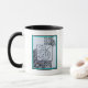 Peacock & Leaf Blk & Whit Ink Turquoise Border. Mug