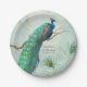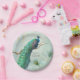 Peacock on Tree Branch Elegant Gold Leaf Look Paper Plate